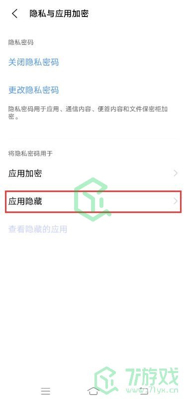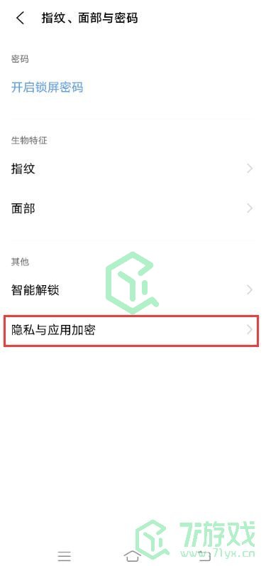 2、在功能设置中,用户可以看到其他分类中的“隐私与应用”加密功能,进入就可以对软件设置隐藏。