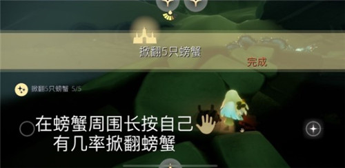 3、来到螃蟹边上长安自己尝试掀翻它们。