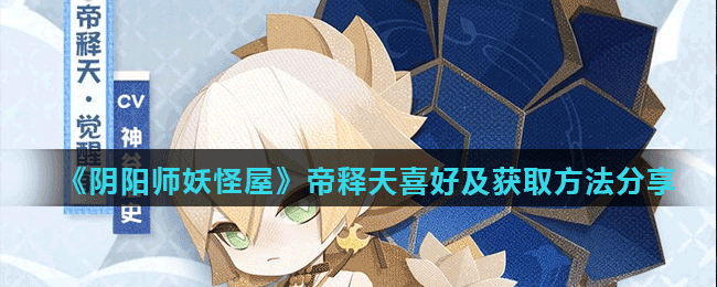 在阴阳师妖怪屋游戏当中,帝释天具体喜好什么呢,就在近期爆料新SSR妖怪秩序怪帝释天,很多玩家小伙伴肯定也都是有所了解的,可以关于新角色帝释天具体喜欢大家都不是很清楚,接下来小编就为大家带来《阴阳师妖怪屋》帝释天喜好及获取方法分享。