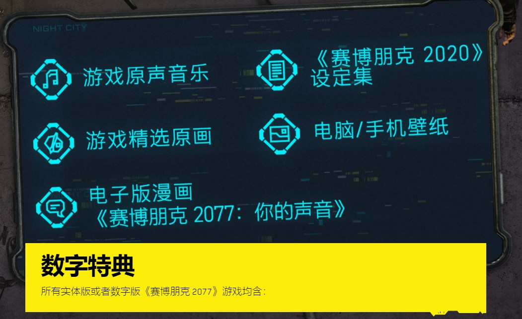 2、数字特典内容可以在官方网站领取(https://www.cyberpunk.net/zh-cn/goodies)